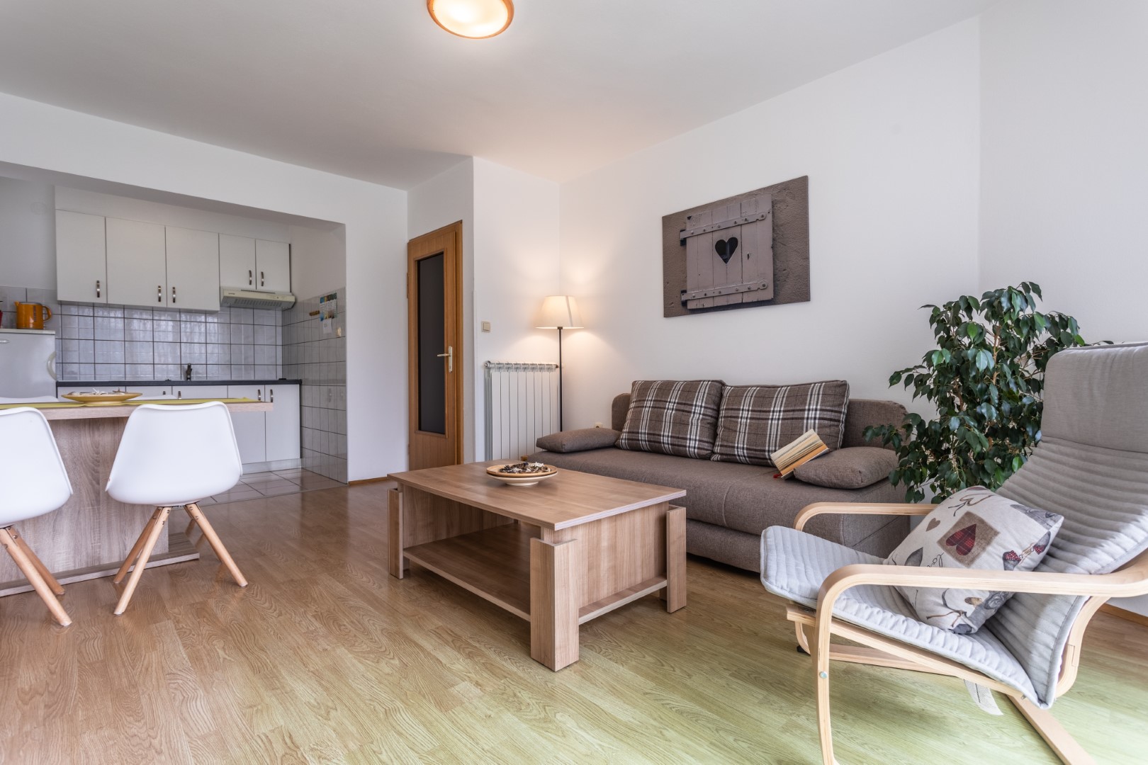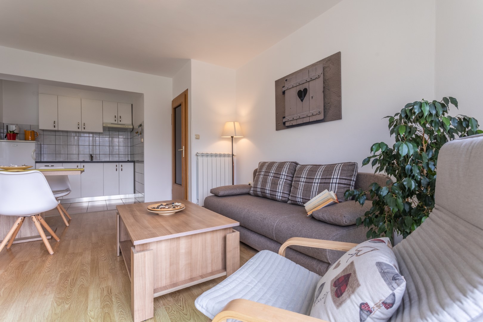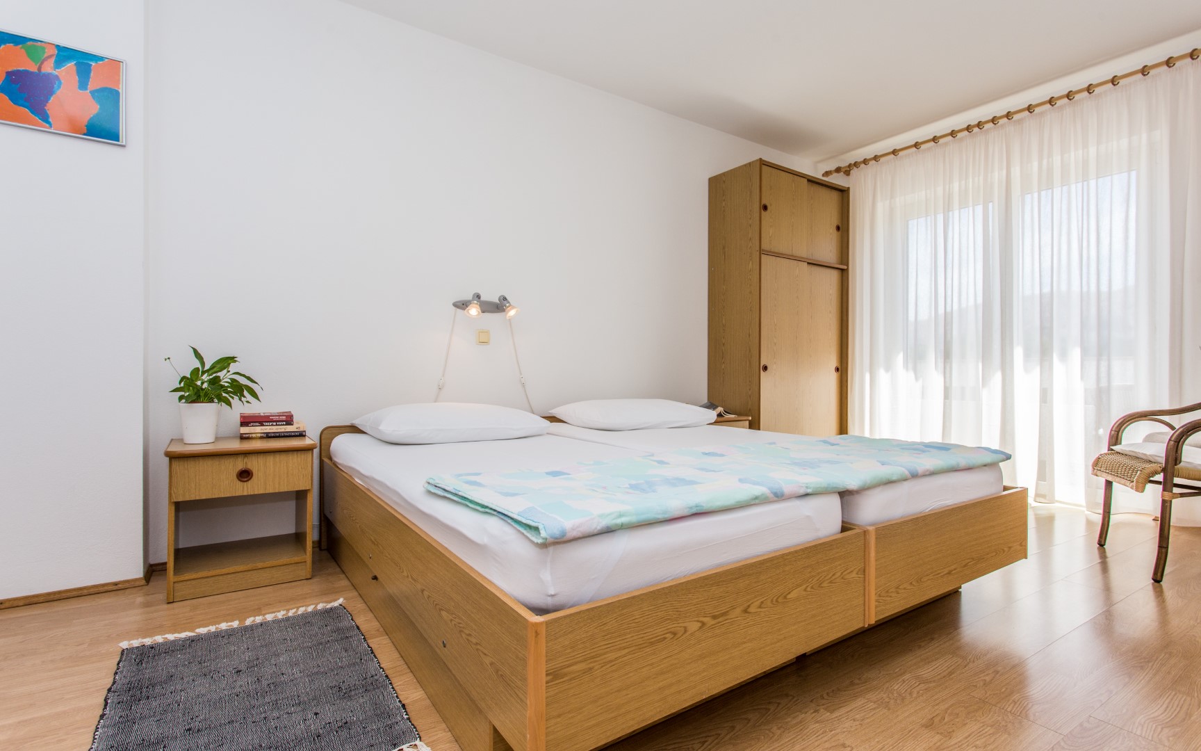 Apartment for four persons with two bedrooms, living area with kitchen, bathroom and a terrace facing south.