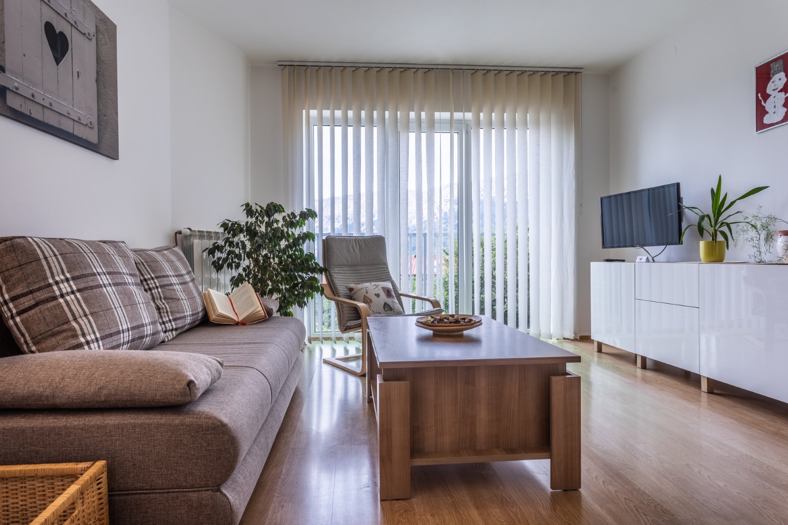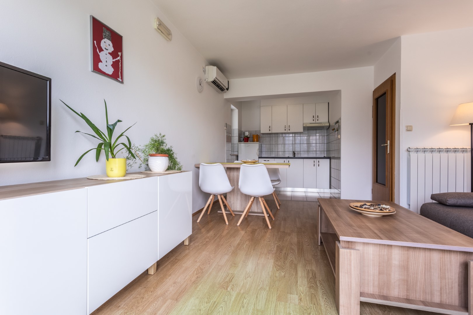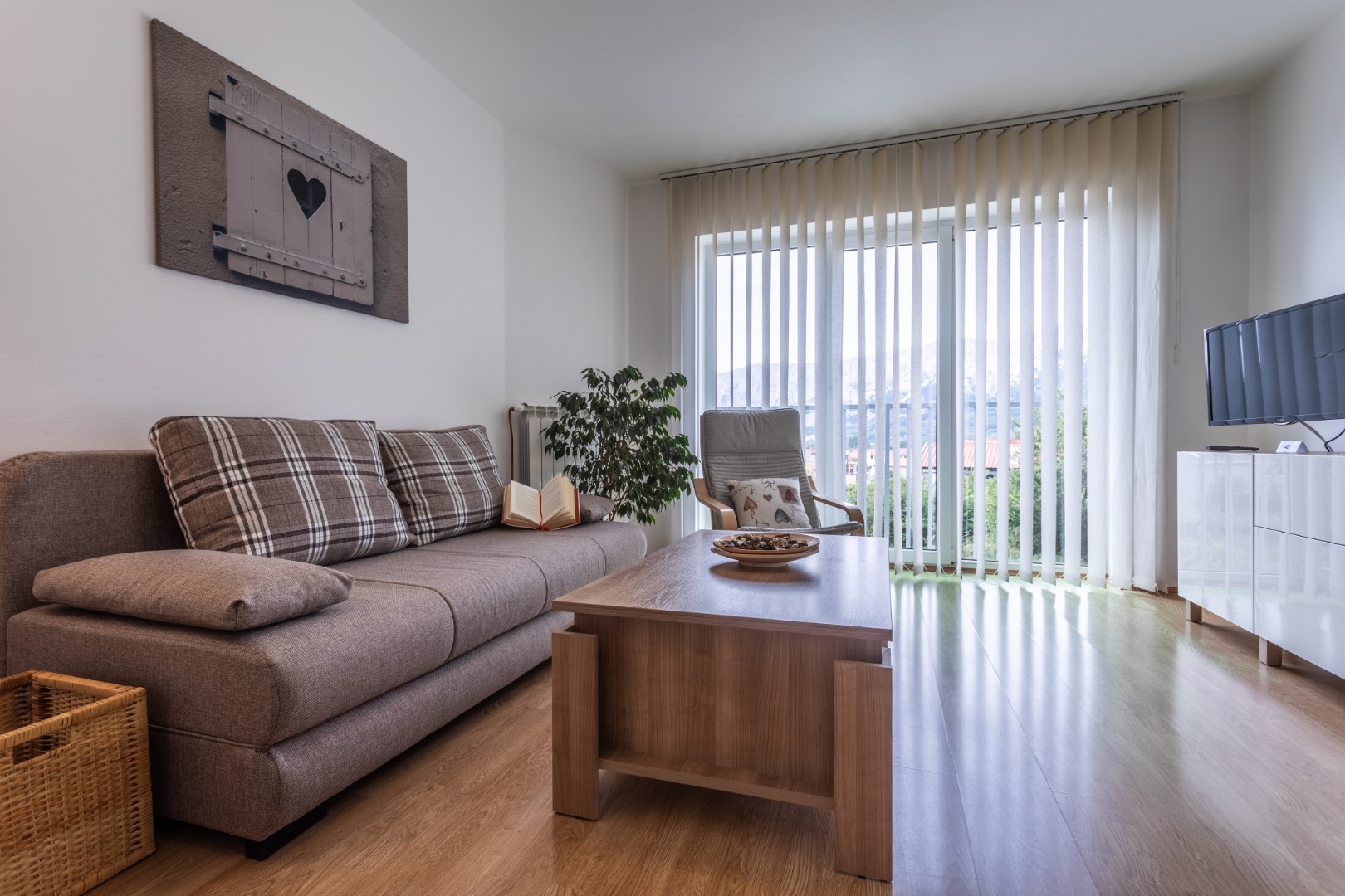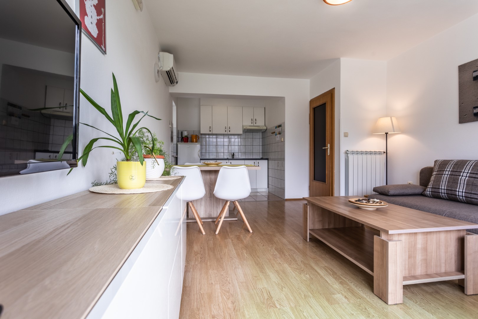 Apartment for four persons with two bedrooms, living area with kitchen, bathroom and a terrace facing south.